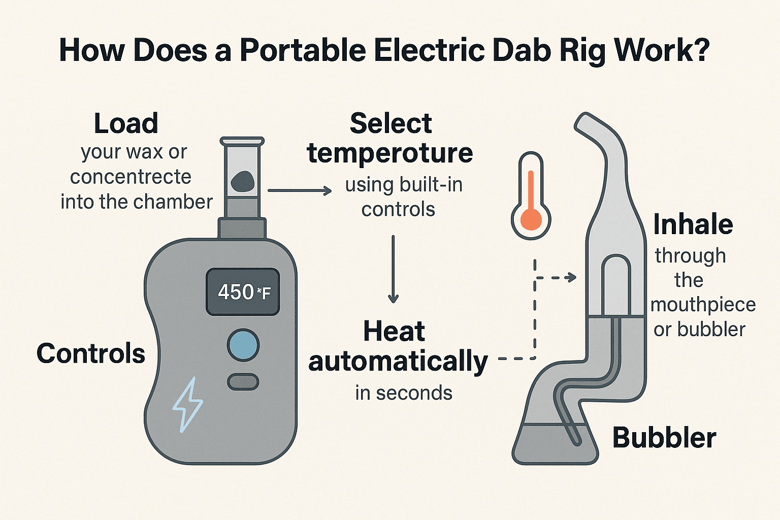Most electric dab rig portable devices follow a simple 4-step system: